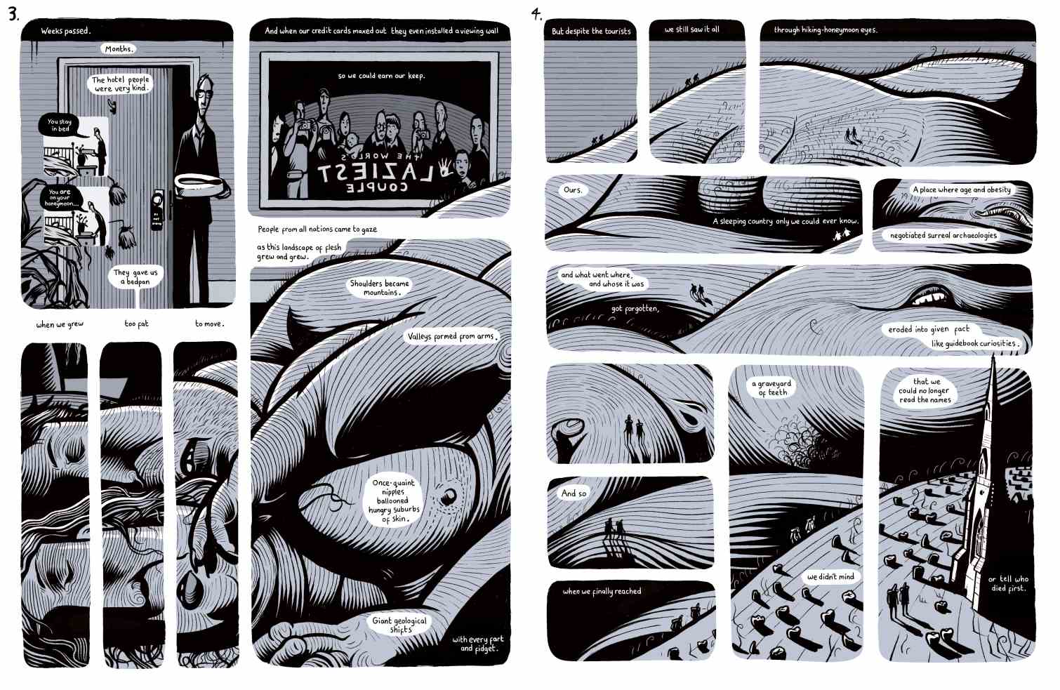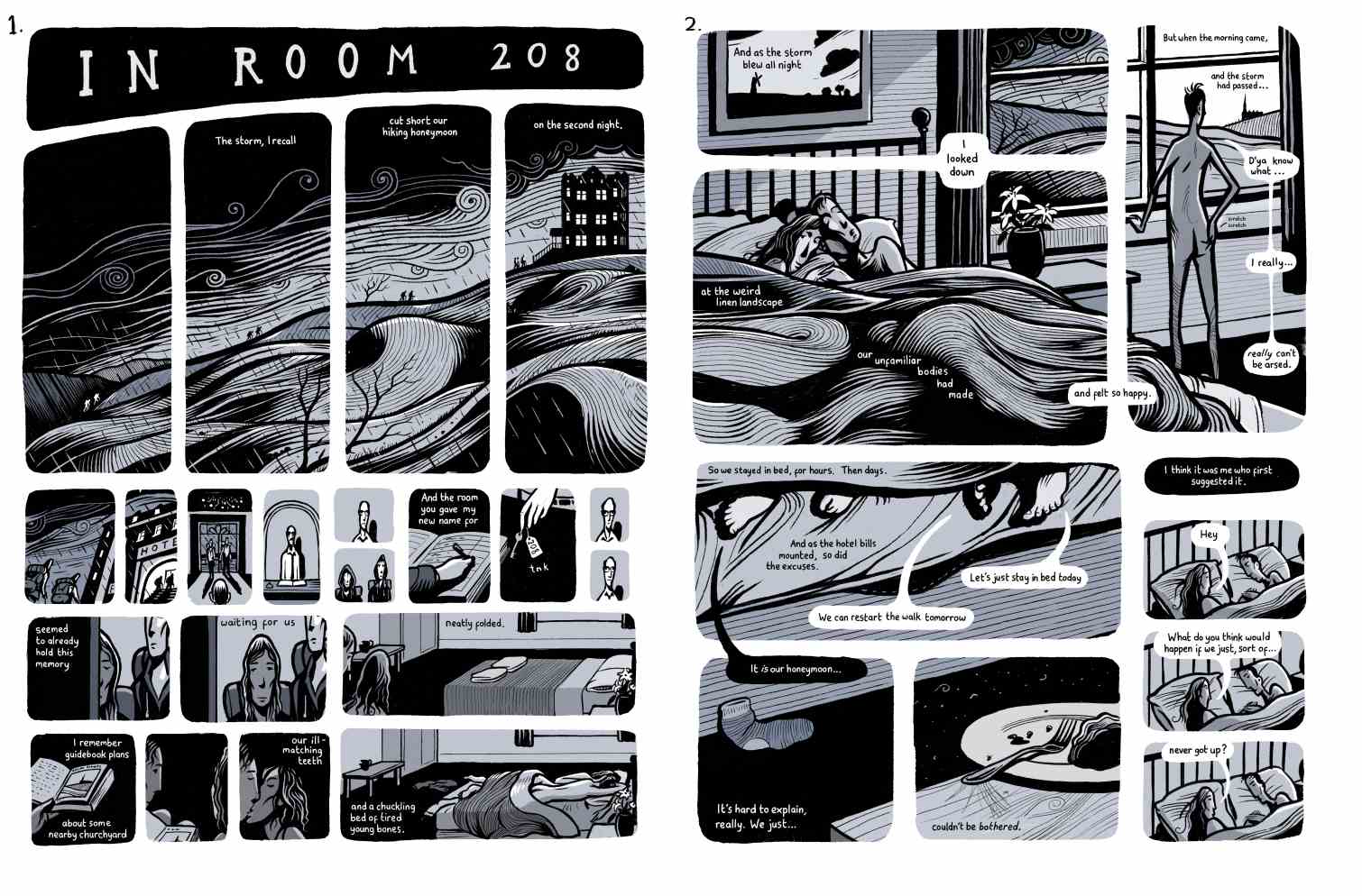 I’d already started my career by entering a competition at uni, so I felt like entering another one might help me along a bit more. I had looked at the competition and realised I could do it well - it was a full newspaper spread, and I realised that I just had to do something interesting enough for the judges and ‘worth reading’ enough for the readers. It was on my honeymoon and we were camping in rainy France, not wanting to get out of the tent, while I was in the campsite laundrette waiting for our clothes to dry, I scripted a story about a couple who decided never to get out of bed. It was a simple story-starter, but I realised I could go quite ‘dark’ with it - a sort of body-horror thing which had this nice visual metaphor to hang the design around. Design, story, visuals, tone, meaning - competitions are all about ticking the boxes!