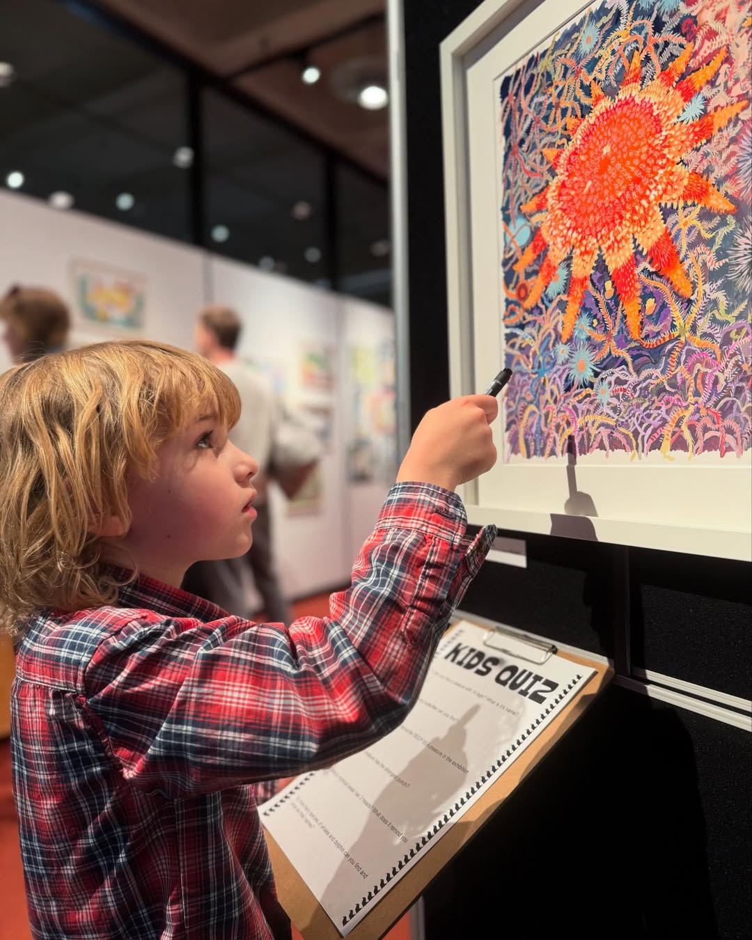"It’s been a good few years since we’ve had any exhibition so we felt a bit out of practice, but it was a lot of chaotic fun to have a kid friendly opening! Hopefully not too many chocolate finger prints over it all!"