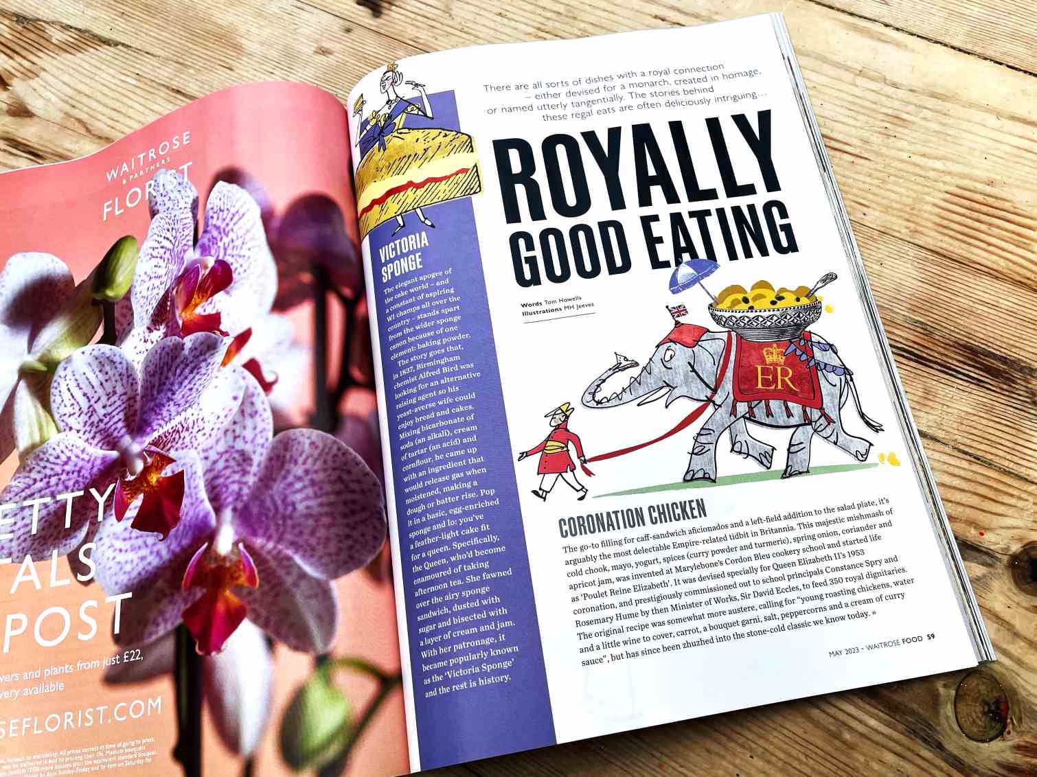 This May, MH Jeeves was commissioned by Kerry Wakefield to create a series of illustrations that accompanied an article on royal dishes for Waitrose Food magazine. See more of her cartooning creations over on her portfolio by clicking here.