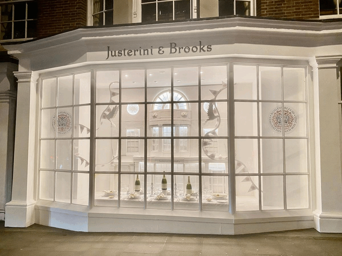 Andy Singleton was commissioned by Justerini and Brooks, the UK's oldest wine merchants, to create an installation that celebrated the Coronation. Working with the agency Brave New World, they developed a concept of a street party in front of a scaled-down version of the J&B building façade that was re-created in beautiful white paper. White paper doves fly over the table carrying bunting with the king's seal, in a playful addition to the scene. Along with an opulent dining table set up also featuring magnums of champagne. Explore Andy's excellent portfolio now!