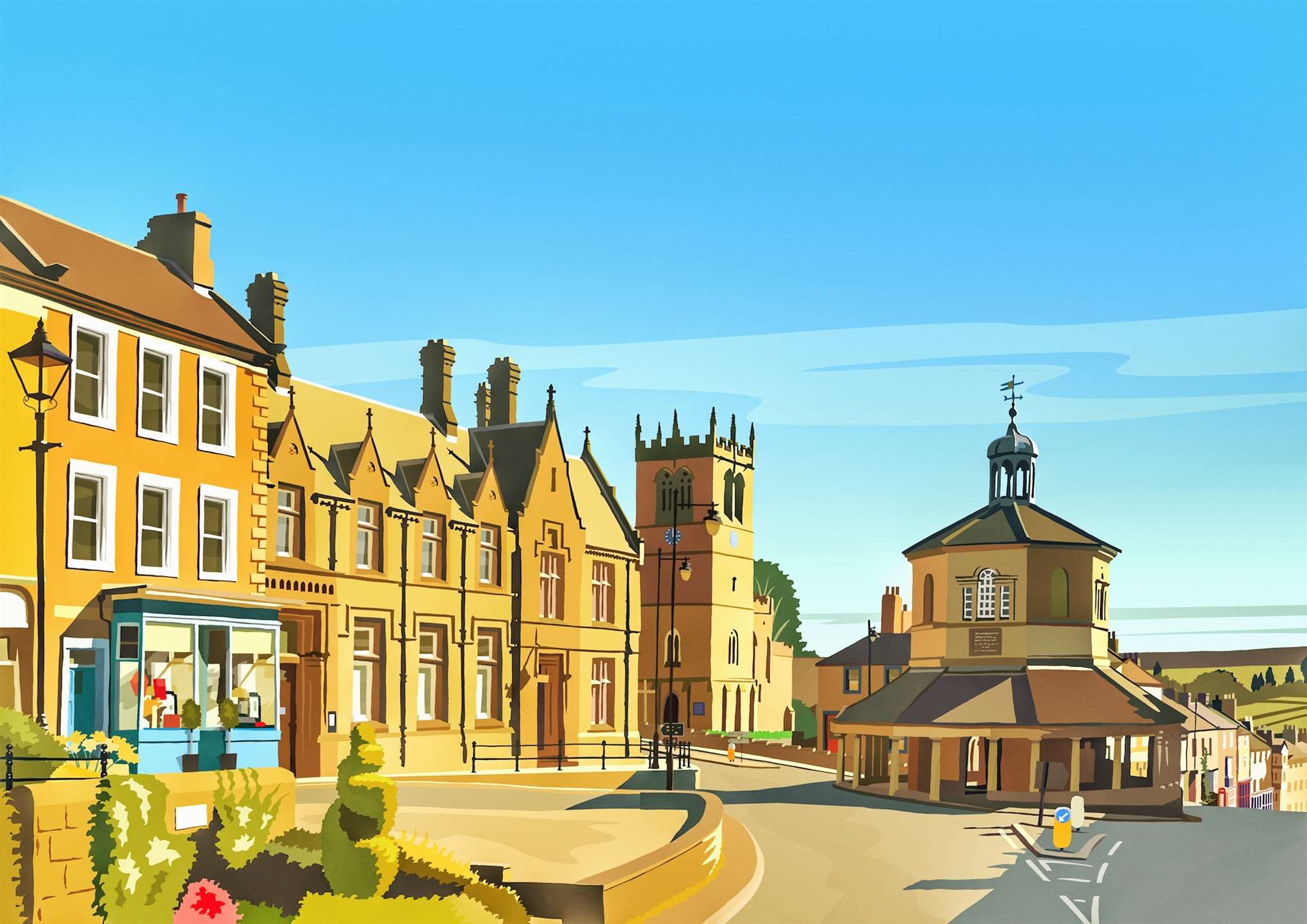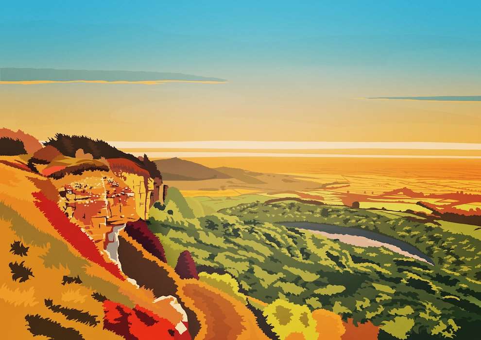 Richard is a contemporary digital travel artist specialising in hand-drawn landscapes defined by bold colour, clean lines, and a strong sense of place. Inspired by classic twentieth-century travel art and the scenery of Yorkshire and beyond, his work simplifies real locations into striking, modern compositions that balance clarity with atmosphere. His award-winning designs have featured internationally across books, magazines, and large-scale installations.