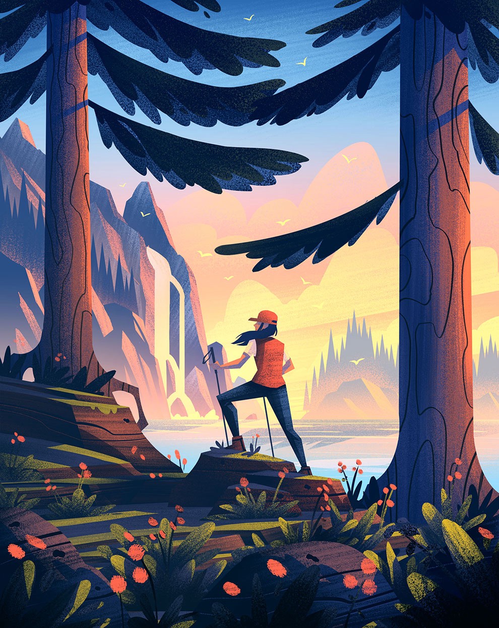 Based in Colorado, Brian Edward Miller (aka BEMOCS) is the artist and illustrator behind Orlin Culture Shop (OCS for short). The OCS represents an amalgamation of influences born out of an 80’s driven childhood, a family legacy of artists and craftsman, and over a decade of experience as a creative professional. His evocatively stylistic landscapes and vibrantly energetic human figures are brought to life with bold strokes and strong color palettes. Brian has created work for a multitude of clients such as REI, Apple, Microsoft, Penguin, Adobe, and more.