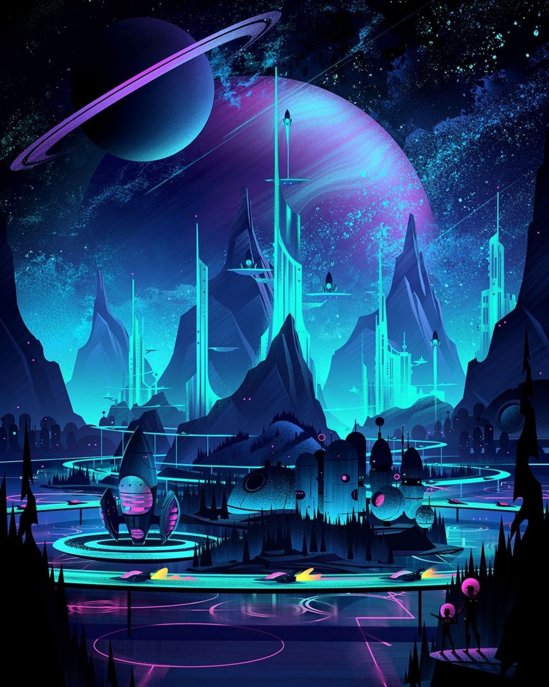 The first is the work I did with Keymaster Games for the boardgame, Spacepark. This was my first true board game project and the theme afforded me the opportunity to do what I love most: creating and visualizing worlds! I worked hand in hand with Keymaster to develop a series of travel posters for each of the galactic locations in the game.