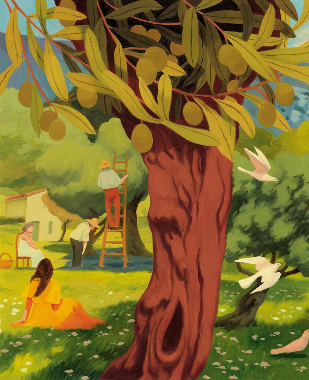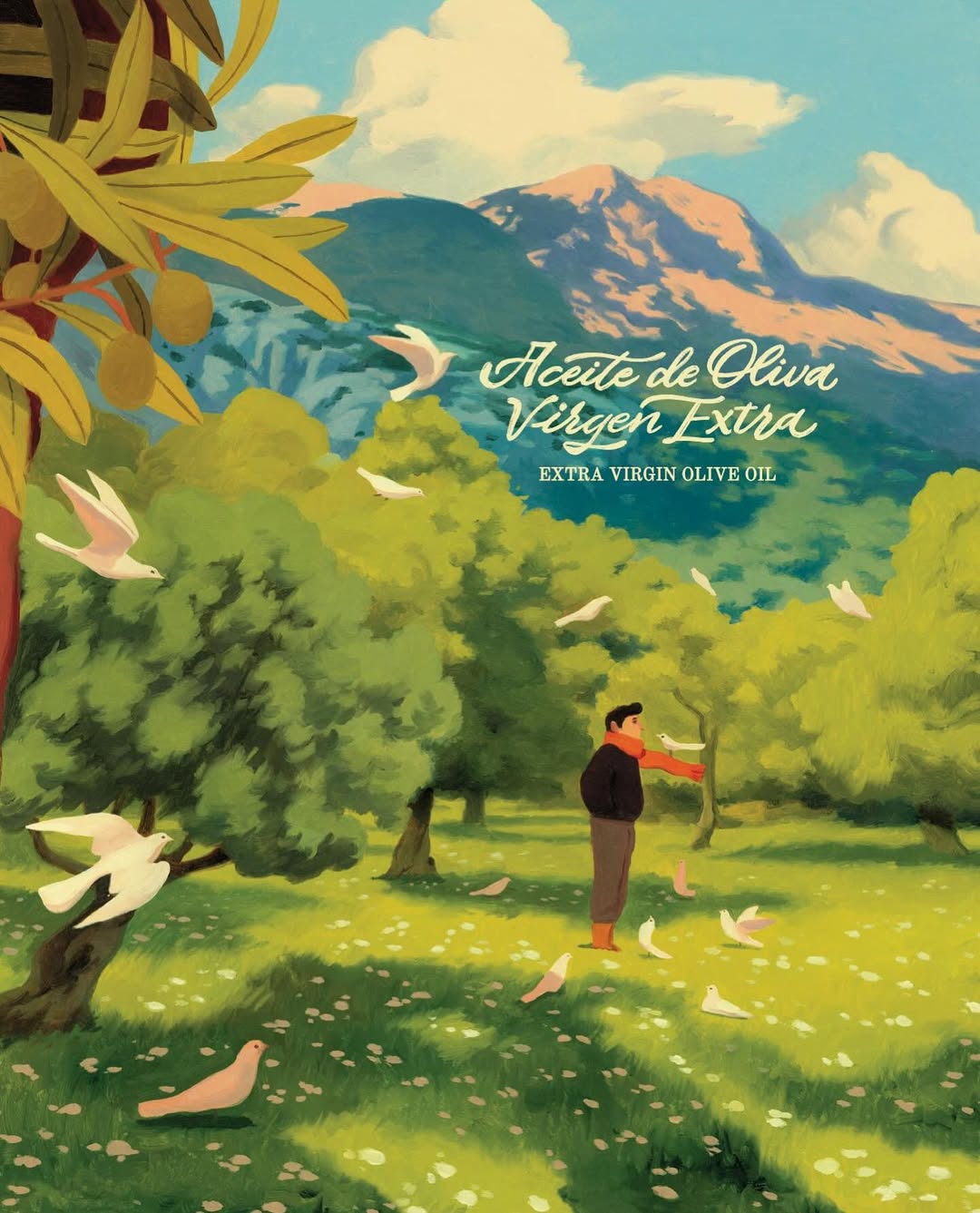 For the second time in this newsletter we get treated to a stunning piece of commercial art plus an insight into its making. Barcelona-based David De Las Heras has created this dreamy olive grove for a wraparound extra virgin oil tin for Alía.