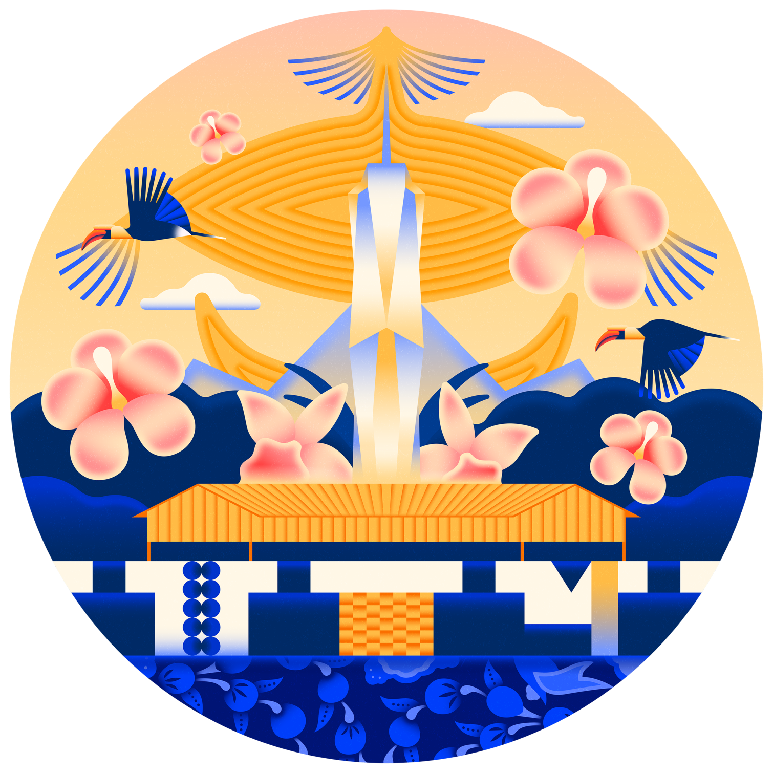 "In this installation, crystal lenses flow across the space, each one celebrating innovation from across Asia Pacific and Japan. Within every crystalline form, a carefully illustrated symbol represents the diverse voices and vibrant communities that make up our region. Together, these symbols form a constellation of connections, reflecting how ideas and breakthroughs transcend borders to converge at this innovation hub.