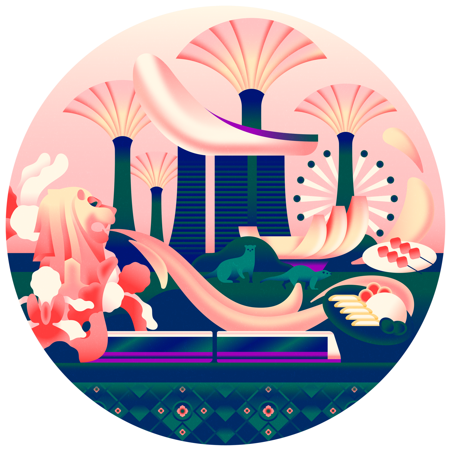 The project - titled Global Refractions 2025 - was commissioned by AWS (Amazon Web Services) via brand activation agency Pico as part of the entrance for their new Innovation Hub in Singapore. The artworks visualise AWS' innovation and presence in Asia, with each crystal glass roundel representing a unique country with a brief that allowed Elen an abundance of creative freedom.