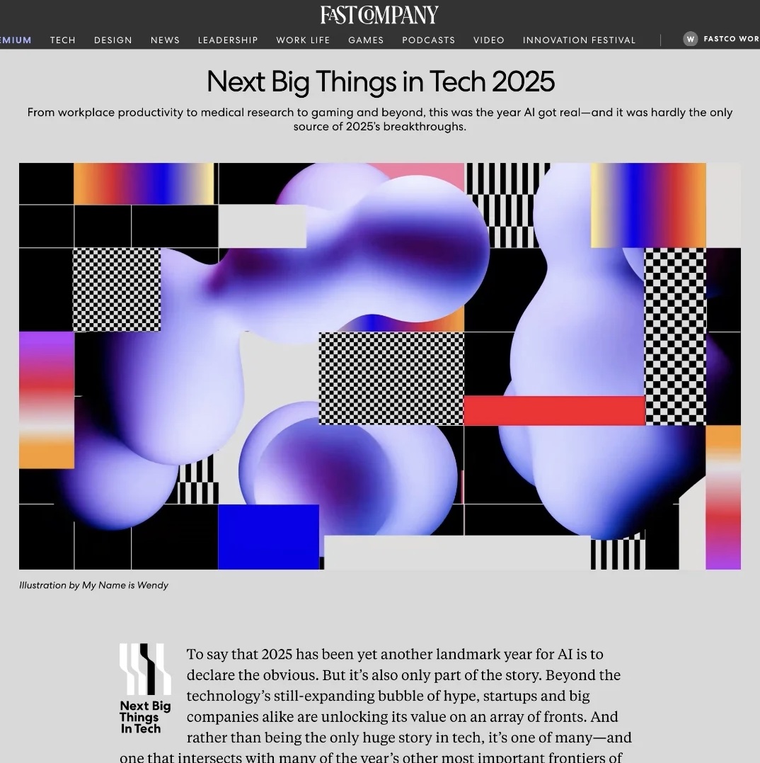CIA’s French powerhouse of Carole Gautier and Eugénie Favre create eye-popping, jaw-dropping graphic masterpieces for branding, installations, motion design and, frankly, anything and everything providing it’s fabulous! Partnering up once again with Fast Company in NYC, they’ve produced a graphic animation for the annual Next Big Things In Digital Tech event. Doesn’t exactly lend itself to a catchy acronym, but what it does is celebrate companies that are creating exciting advancements in a variety of technological fields.
